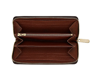 - 모노그램 캔버스 라인. 래더 라이닝과 브라스 메탈장식 - 지퍼 잠금장치 - 8개의 신용카트 슬롯 - 지퍼를 위한 오픈 컴파트먼트 - 지퍼로 된 동전 컴파트먼트 - 지폐와 여권을 널 수 있는 거셋으로 된 세개의 큰 컴파트먼트 - 양쪽의 두개의 내부패치 포