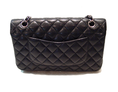 - 블랙 컬러의 캐비어 가죽소재로 백의 오픈은 은장의 턴 오픈 방식입니다. - 어깨 끈은 가죽과 은장의 체인으로 되어 있어 견고하며 백의 커버를 오픈하면 커버의 안쪽에 지퍼식 오픈 포켓과 샤넬 로고가 수 놓여 있습니다. - 안쪽으로 또 다른 스냅 오픈 방식의 커버가 있으며 내부는 블랙컬러의 가죽으로 마감되어 있으며 두개의 보조포켓이 있습니다. - 상태 : 외부 제품상태 우수하나 내부 가죽 스크래치 있습니다. - 제품 등급 : A- - 부속물 : 개런티 카드 - 사이즈 : W25 * D6.5 * H16(cm) - 원산지 : 프랑스 - 13번대 제품입니다