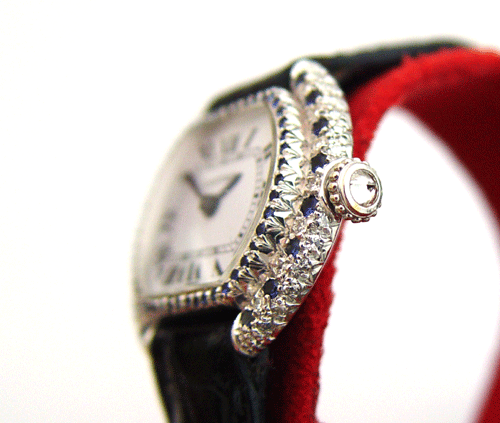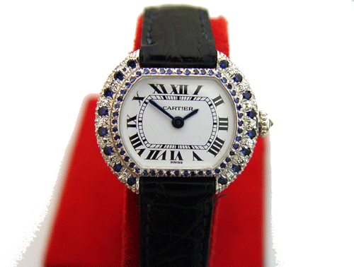 까르띠에 18k화이트골드 다이아몬드/사파이어 앤틱시계입니다.
