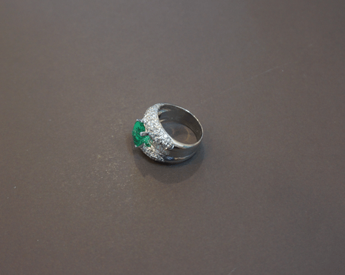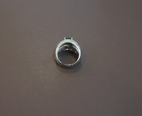 에메랄드 반지 소재 : 에메랄드 + 다이아몬드 + 18k 화이트 골드 반지 사이즈 : 12호 총중량 : 10.8g