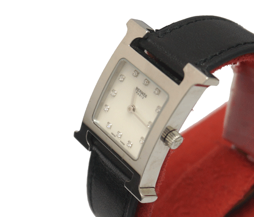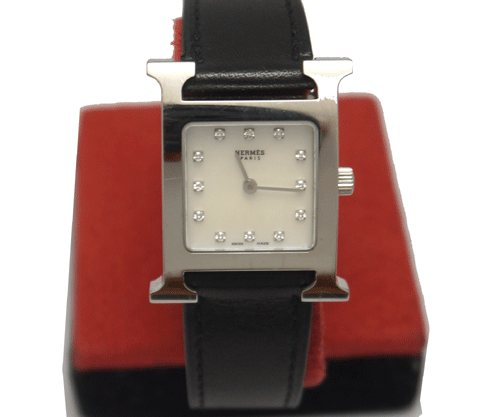 에르메스 H-아워(자개판) 소재 : 포인트 다이아몬드 + 스테인레스 스틸 사이즈 : 여성 무브먼트 : 쿼츠(건전지) 부속품 : 박스, 보증서 원산지 : 스위스