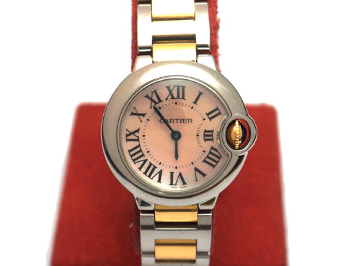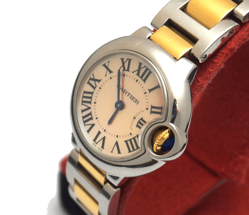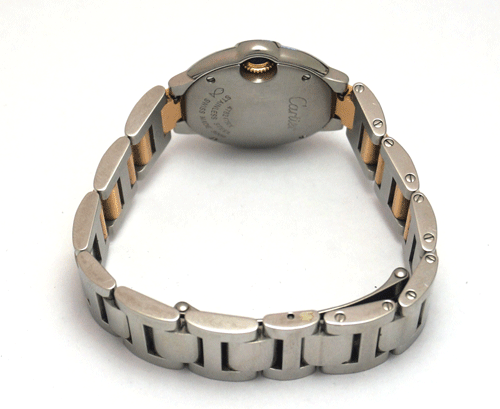 까르띠에 발롱블루 콤비여성) 사이즈 : 28mm 소재 : 스테인레스 스틸+18k 판 : 자개판 무브먼트 : 쿼츠(건전지) 방수 30m/생활 방수 케이스 규격 : 28.5mm , 두께 9.35mm 전체적으로 상태 좋으며 부속품은 없습니다. 원산지 : 스위스