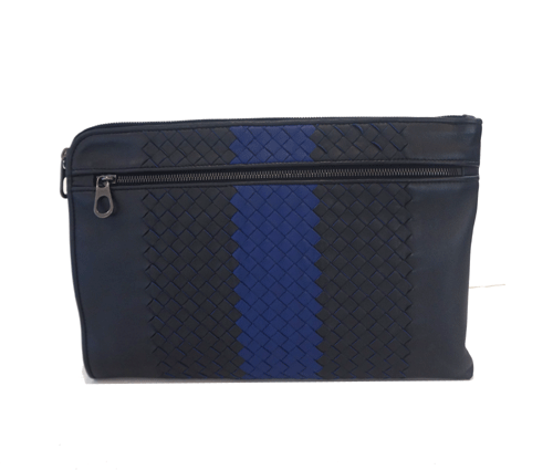보테가 베네타 클러치백입니다. 색상 : 블랙 부드러운 가죽 소재이며 매쉬라인으로 되어 있습니다. (매쉬 가운데 부분 블루 컬러) 전체적으로 상태 좋습니다. 사이즈 : 34.5 * 22cm 부속품 : 더스트, 영수증
