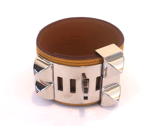 에르메스 은장 장식의 여성 팔찌입니다. 1회 사용한 제품으로 상태 최상입니다. 부속품 : 박스, 더스트 제품상태등급 : 특A 사이즈 : S (팔찌 안쪽 길이 : 14.2~16.5cm) 팔찌 폭 : 4cm 원산지 : 프랑스