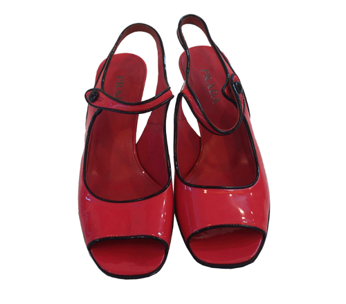 프라다 여성 샌들 유광 가죽 소재이며 전체적으로 상태 좋습니다. 제품상태등급 : A 사이즈 : 37 1/2(245) 굽높이 :