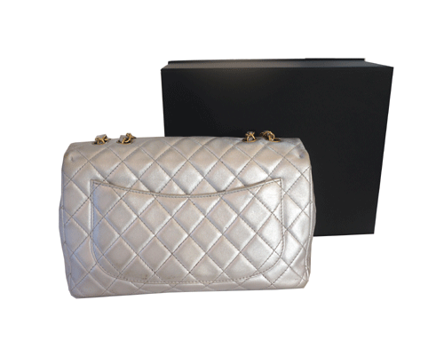 샤넬 램스킨 펄(은색) 클래식 점보(라지) 숄더백입니다 내용 : 견고한 램소킨 소재에 시원스러운 점보 사이즈로 더욱 스타일리쉬하게 연출할수 있습니다. 은색컬러 &금장으로 깔끔하고 무난하게 사용할수 있습니다. 제품상태등급 : A(전체적으로 상태 좋습니다) 사이즈 : 30 * 18.5 * 9.5cm 부속품 : 박스(신형박스), 개런키 카드 원산지 : 프랑스 12번대 제품입니다.