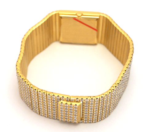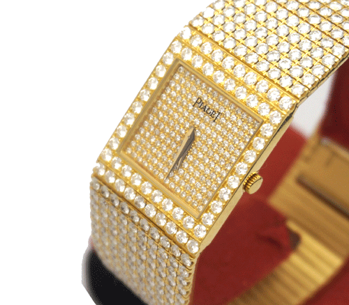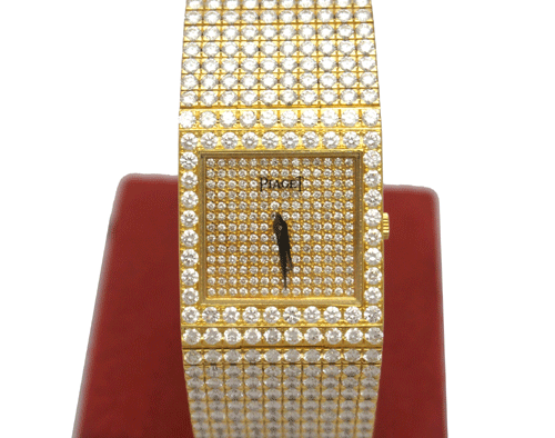 피아제 All Diamond 전체 오리지날 다이아몬 세팅 18k 옐로우 골드 무브먼트 : 수동 사이즈 : 24 * 24mm 시계 총길이 : 19cm 부속품 : 피아제 보증서 원산지 : 스위스