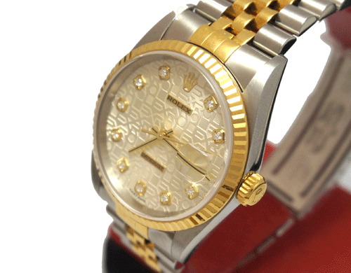 로렉스 16233 모델(18k 콤비) 10포인트 다이아몬드 컴퓨터판입니다. 사이즈 : 36mm 소재 : 스테인레스 스틸/18k옐로우골드/ 10포인트 오리지날 다이아몬드 무브먼트 : 오토매틱 부속품 : 로렉스 A/S 2012년 점검 카드. 원산지 : 스위스 2001년 제품입니다.