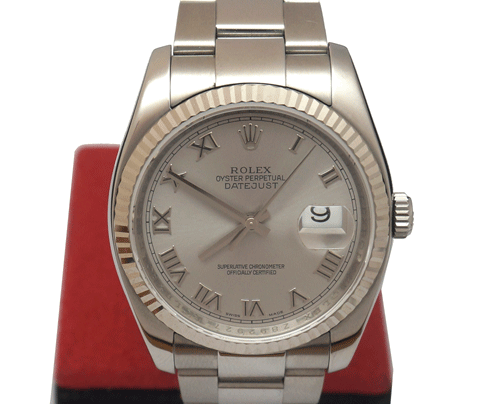 로렉스 DateJust 116234 남성용 시계입니다. 사이즈 : 36mm 무브먼트: 기계식자동(오토매틱) 재질 : 스틸 베젤부분 : 18k 화이트골드 다이얼 : 은색판에 로마자 Z단위 인그레빙제품입니다. 부속품 : 자체 보증서 원산지 : 스위스