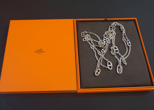 에르메스 925(은) 소재 목걸이 제품상태등급 : 특A(상태 아주 좋음) 목걸이 총길이 : 약 72cm 소재 : 은 부속품 : 박스 원산지 : 프랑스