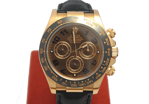 로렉스 데이토나 초코 116515LN 로즈골드시계입니다. (ROLEX Daytona rose Gold Chocolate Dial 116515LN) 모델 : 데이토나 116515LN 소재 : 18k 로즈골드 다이얼 : 초코 베젤 : 블랙 세라크롬 세라믹 베젤 사이즈 : 40mm 무브먼트 : 오토매틱 밴드 : 블랙 악어 가죽 밴드 부속품 : 박스, 보증서 원산지 : 스위스 2013년 제품입니다.