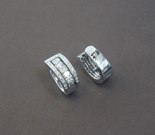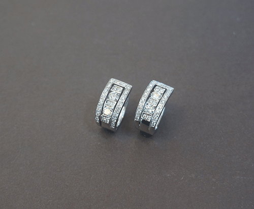 다미아니 귀걸이입니다. 소재 : 18k 화이트 골드/ 오리지날 다이아몬드 세팅 귀걸이 크기 사이즈 : 15mm* 13mm 귀걸이 폭 :