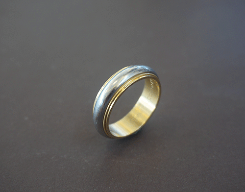 티파니 밀그레인 콤비 반지입니다. 소재 : 18k 옐로우 골드+플래티늄(PT950) 사이즈 : 18호 총 중량 : 10.14g 반지 폭 :
