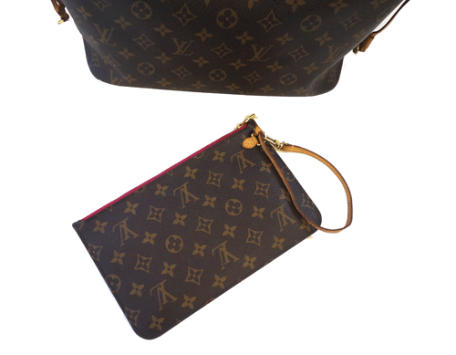 루이비통 네버풀 MM 파우치백 있는 신형 라인입니다. 가장 인기 있는 모노그램이며 사용으로 인한 때탐,내부 이염 있습니다. 제품상태등급 : B+ 사이즈 : 32(45) * 28 * 16cm 부속품 : 파우치백 원산지 : 프랑스