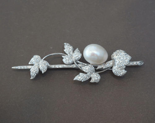 진주 브롯지입니다. 소재 : 18k 화이트 골드/ 진주/ 다이아몬드 브롯지 크기 사이즈 : 6.5 * 2cm