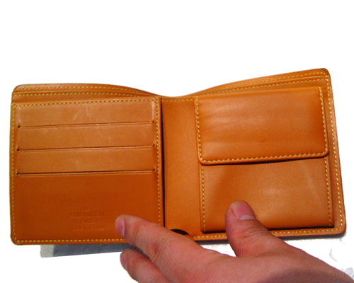 세 개의 크레딧 카드, 지폐 및 동전 수납을 위한 노매드 레더 라인의 지갑입니다.